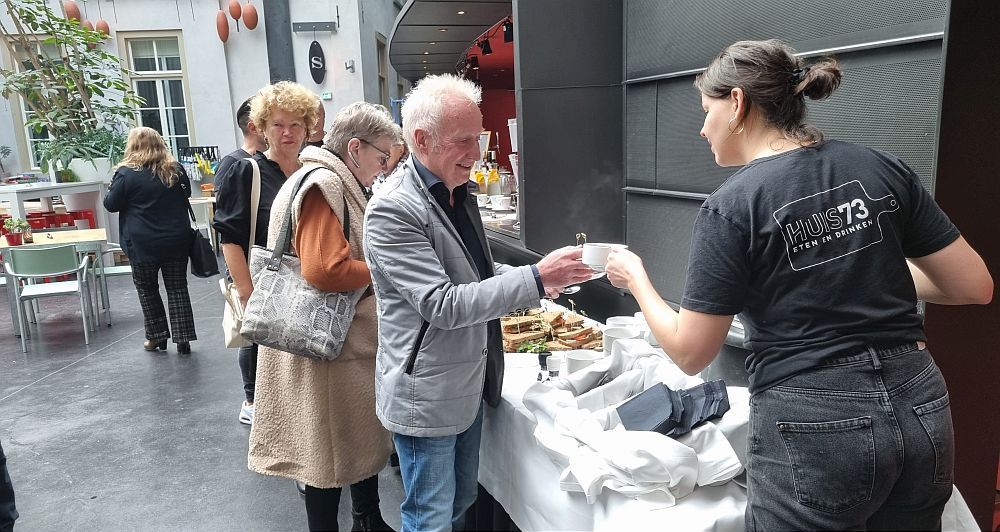 Nan van Schendel (Huis73) lichtte toe welke veranderingen het komend jaar te gebeuren staan in en rond de panden van Huis73. Lotte Landsheer en Frida Rouppe van der Voort (Cor Unum), Ellen Blijlevens (Huiskamer Bij Katrien), Lodie Hofland (Voedselbank) en Huib Smelt (Dierentehuis) vertelden over hun bijzondere geschiedenissen en ervaringen in het werven van fondsen en donaties. De vijf organisaties staan voor forse uitdagingen: Huis73 gaat groots verbouwen, Cor Unum heeft een grote nieuwe oven nodig, Huiskamer Bij Katrien verhuist opnieuw, de Voedselbank begint met een nieuw concept én gaat verhuizen en het Dierentehuis is na een moeilijke periode bezig met het herwinnen en bestendigen van vertrouwen. Bij al deze uitdagingen zijn donaties en schenkingen van harte welkom.